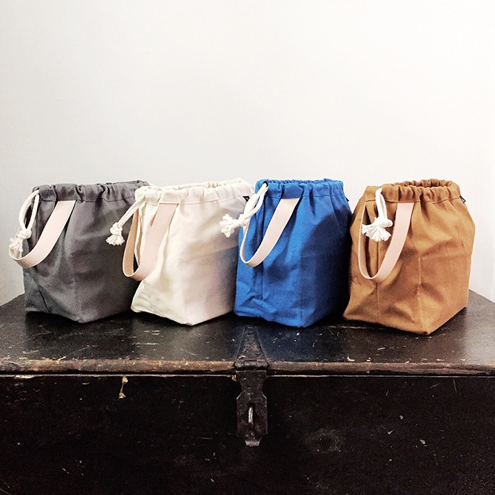 Fringe Supply Co.’s new Porter Bin project bag is made in the USA out of a rugged, 100% cotton canvas, with a triple-weight bottom. It’s 8″ x 12″ at the base and 9″ tall. On the interior, the lining and (generous) pockets are also in canvas. Heavyweight webbing wraparound handles are riveted in antique brass. $90 each and they’ve just landed in space!