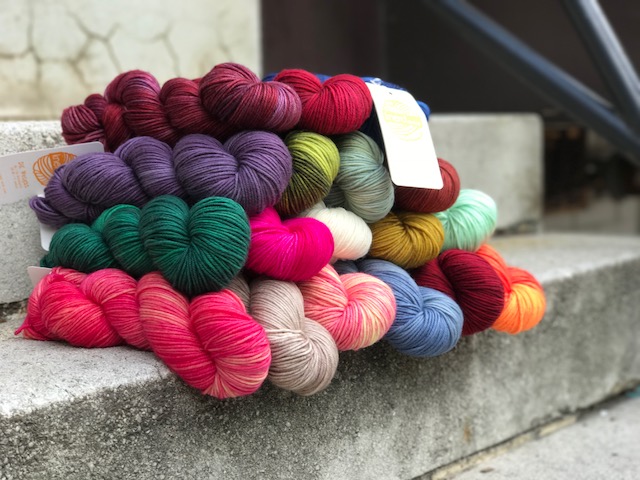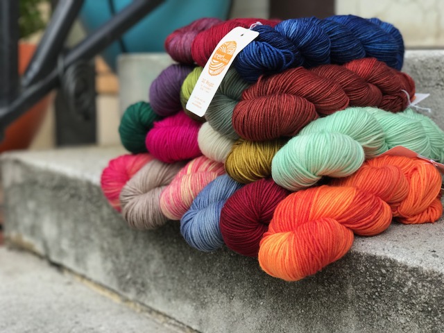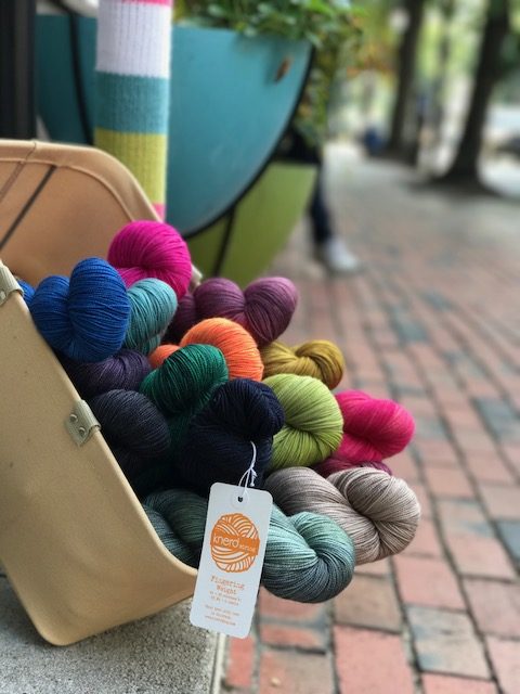 Her husband’s print shop closed a few years later due to a major mechanical failure, leaving Renee to decide whether to return to the corporate world or make Knerd her full-time job. Luckily, she chose Knerd and crowdfunded her way to her first trade show. Orders began flooding in, and Knerd has grown into the brand we see today. So where to go from there? Yarn, of course! Renee has now ventured into the colorful world of hand dyeing, using a variety of soft superwash yarns as her base to add even more color and life to the knitting world.