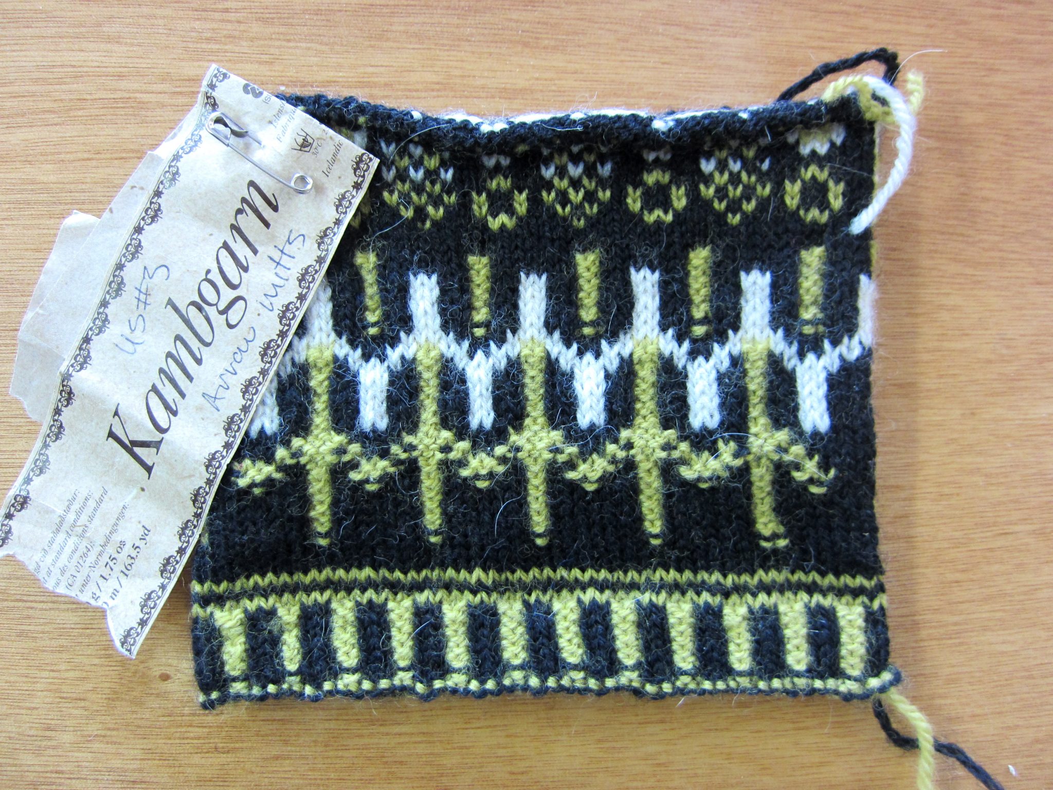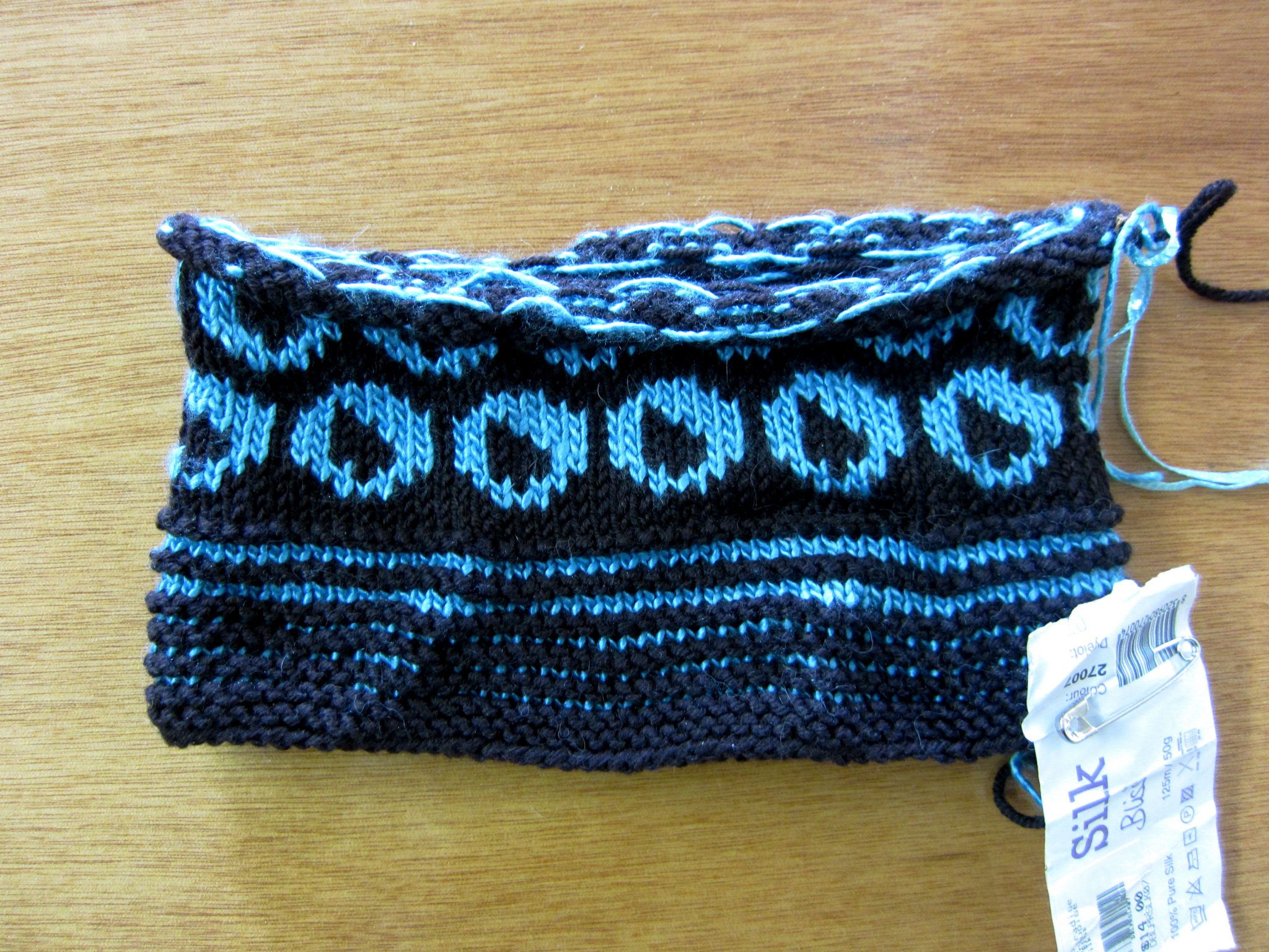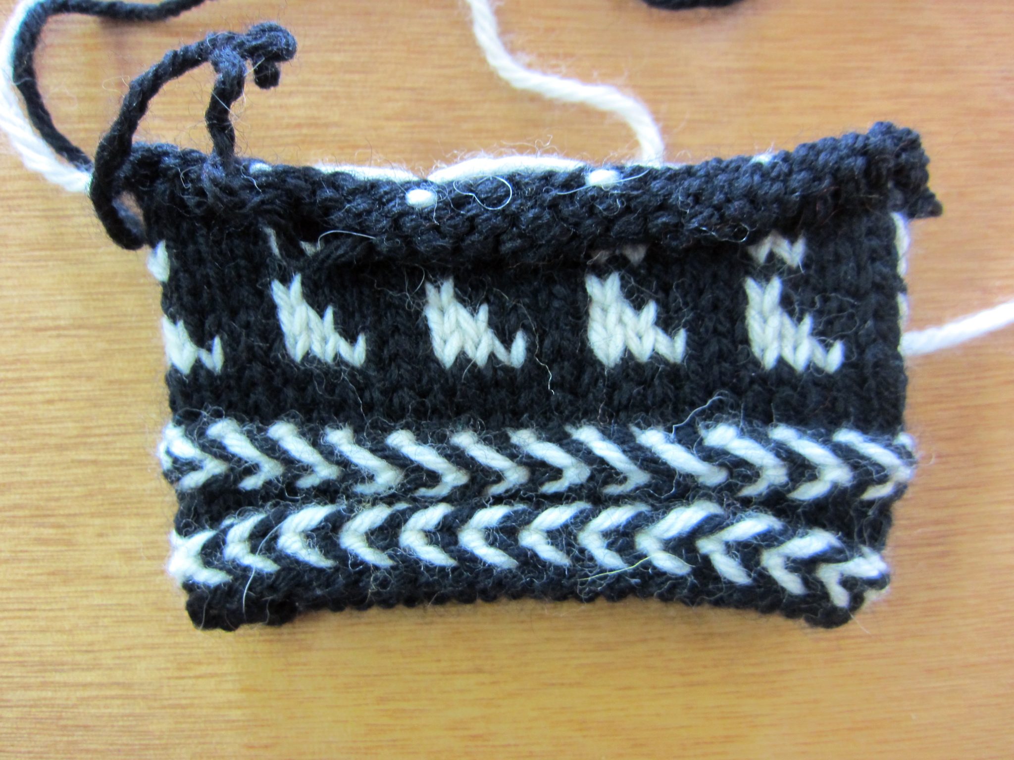 First, when you create a stranded fabric you need to consider both gauge and stretchiness. Your fabric will not have the give that a single-color-at-a-time fabric will. And if you’re working on something that needs to fit but is intended to fit snugly, like a a hat, mitts, or socks, you might be surprised that, although your gauge is correct, your item will not fit on your head/hand/foot. It’s really, really nice to know this before completing a project, right?