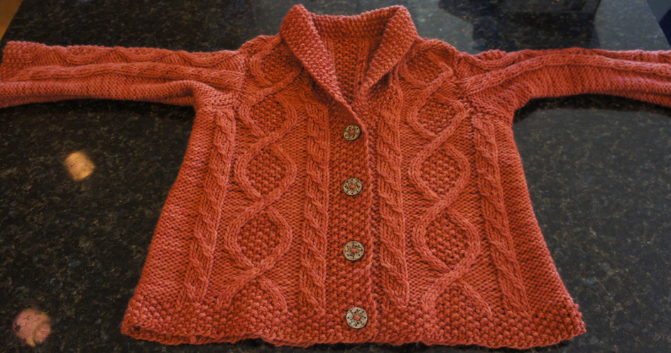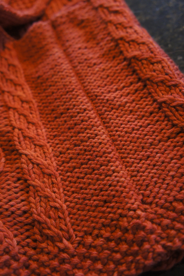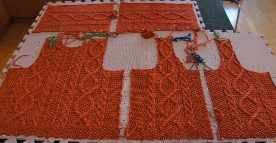 I knit a sweater for my son in pieces, Knitty’s Trellis pattern recently. So how do I go from this: