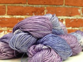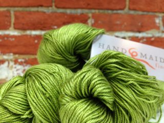 From the misty hills of Nova Scotia come the fine hand-dyed fibers of Handmaiden Yarns. We’ve got solid colors of scrumptiously shimmering Sea Silk in stock – 437 yards of fingering weight in a gorgeous drapey blend of silk and Seacell (a seaweed-derived fiber). Each skein is $40. You all asked, so we delivered!
