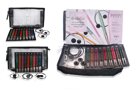 The Dreamz Interchangeable sets from Knitters Pride are beautiful, perfect for those knitters addicted to color and lovely wooden needles! Each needle size is a different color of sturdy birch wood, which makes finding the needle you’re looking for quick and easy. We have: