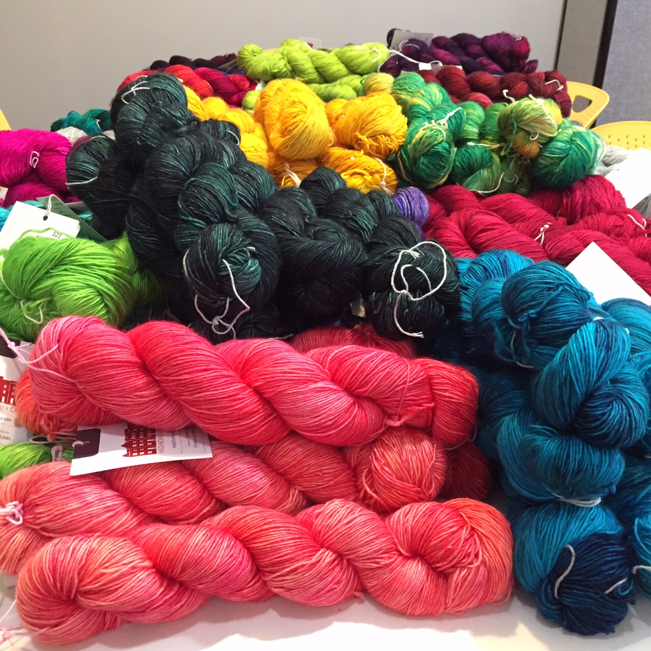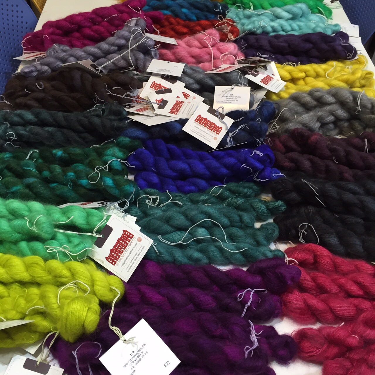 We’re restocked on Neighborhood Fiber Co.’s Rustic Fingering, left, and Loft.