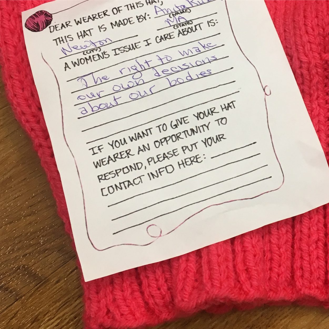 I realized that here was my community asking for me to support them in this project. And even though not all of you have anything to do with it, a lot of you do. And while many of you won’t march, many of you will. I realized that we are a community space for everyone, whether they need a quiet space to feed their baby, a break from work or family, or a place to drop or pick up hats for a march / protest you plan to attend.