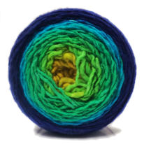 The wonder of this handpainted yarn is that it gradually melts from one color to the next. You can go crazy with brights, fade from one neutral to the rest, or travel across a spectrum. With just four balls to pair together you have endless color combinations and options available to you and far fewer ends to weave in!