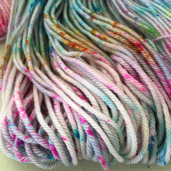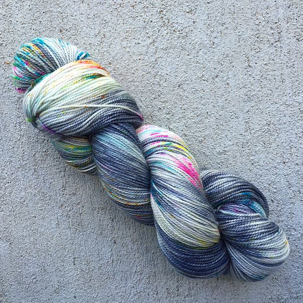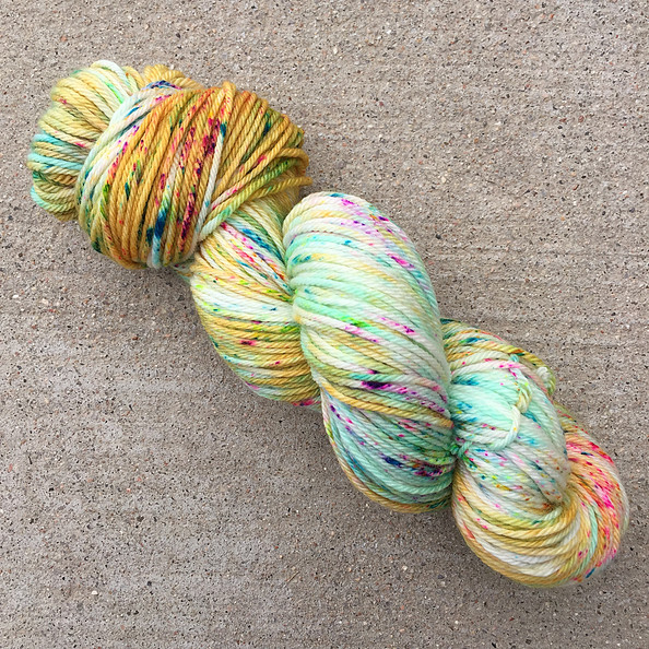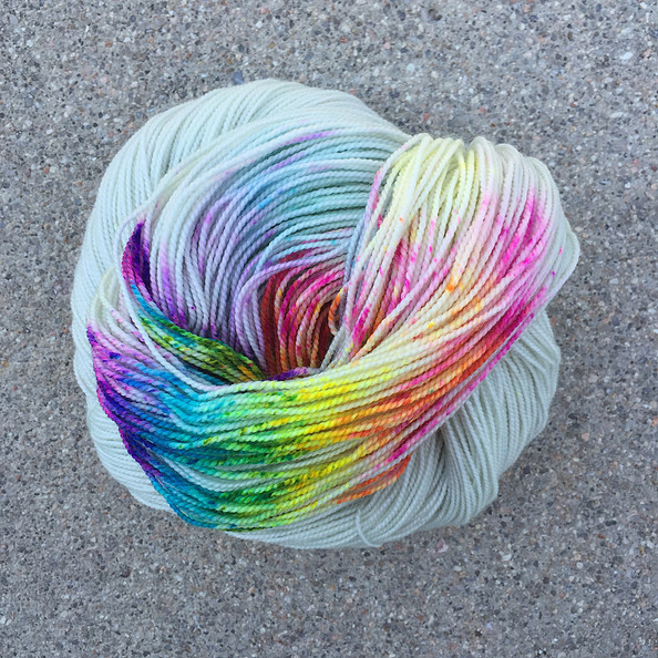 I am so excited to have a fresh shipment of this popular yarn back in stock! Lemonade Shop Simple Sock is a sturdy 2 ply yarn, suitable for socks and accessories. It comes in vibrant and fun multi-colors, including several new colors for the shop (seen below).