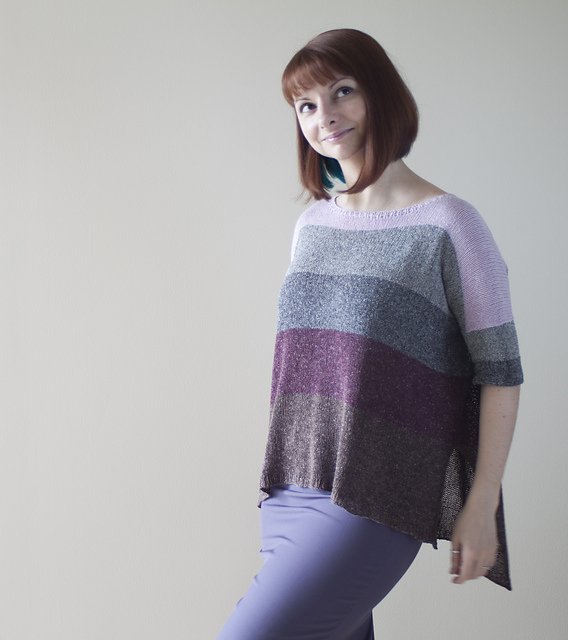 For some suggestions on using this great summer yarns, we have four fabulous garments from Olga Buraya-Kefelian. All of these tops work well for layering, either under a jacket, or over a tank to show off a gently sheer effect.