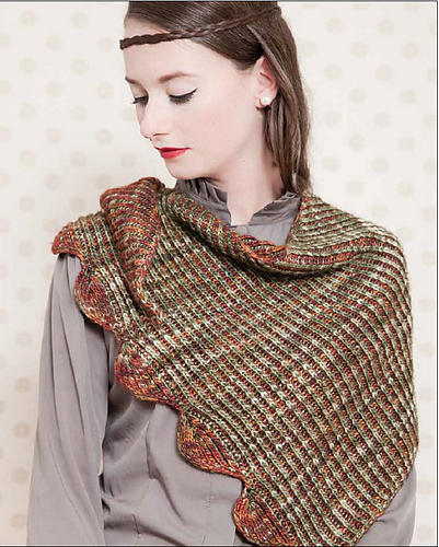 Stegosaurus by Nancy Marchant. Spincycle is a great yarn for brioche color play, and this shawl is a perfect option for this new base.