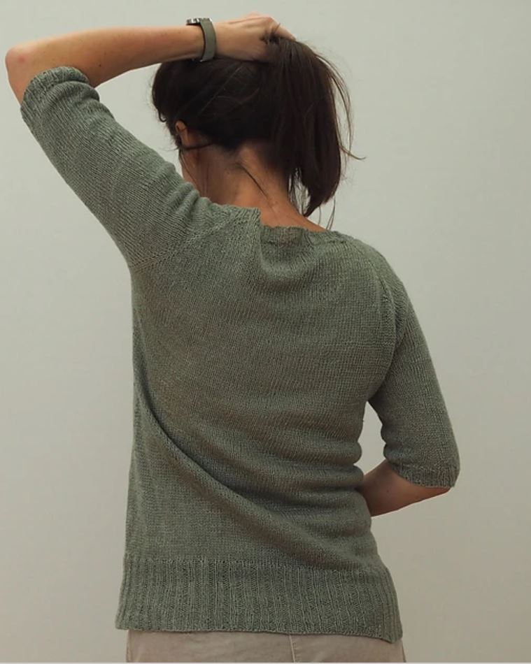 This elbow-length top was designed by Regina Moessmer especially for Lino and combines the ease of top-down construction with the simplicity of this classic, wearable shape that flatters every body.