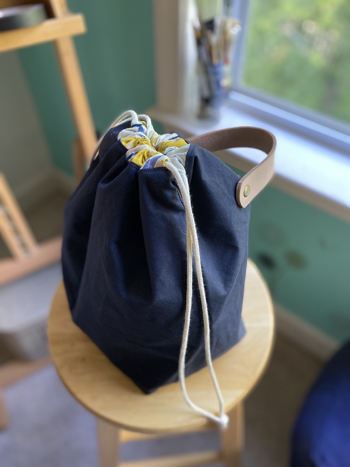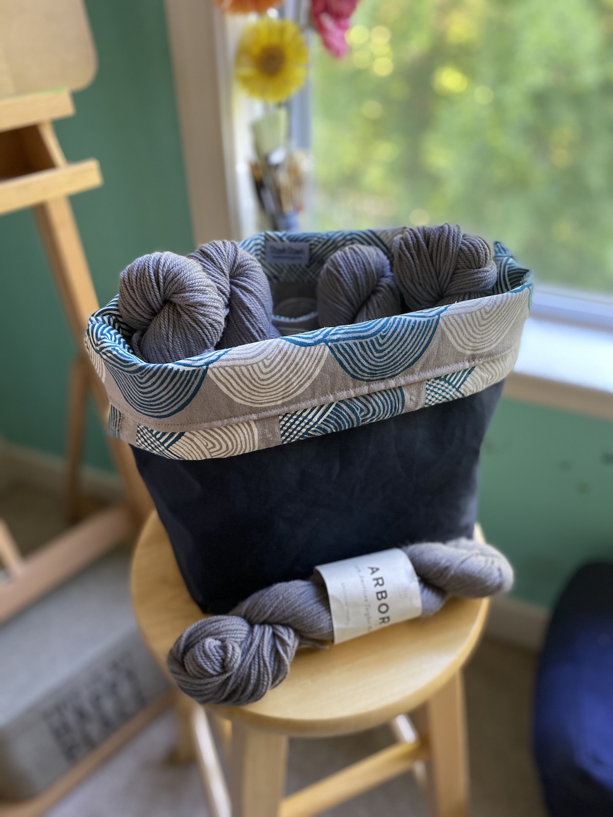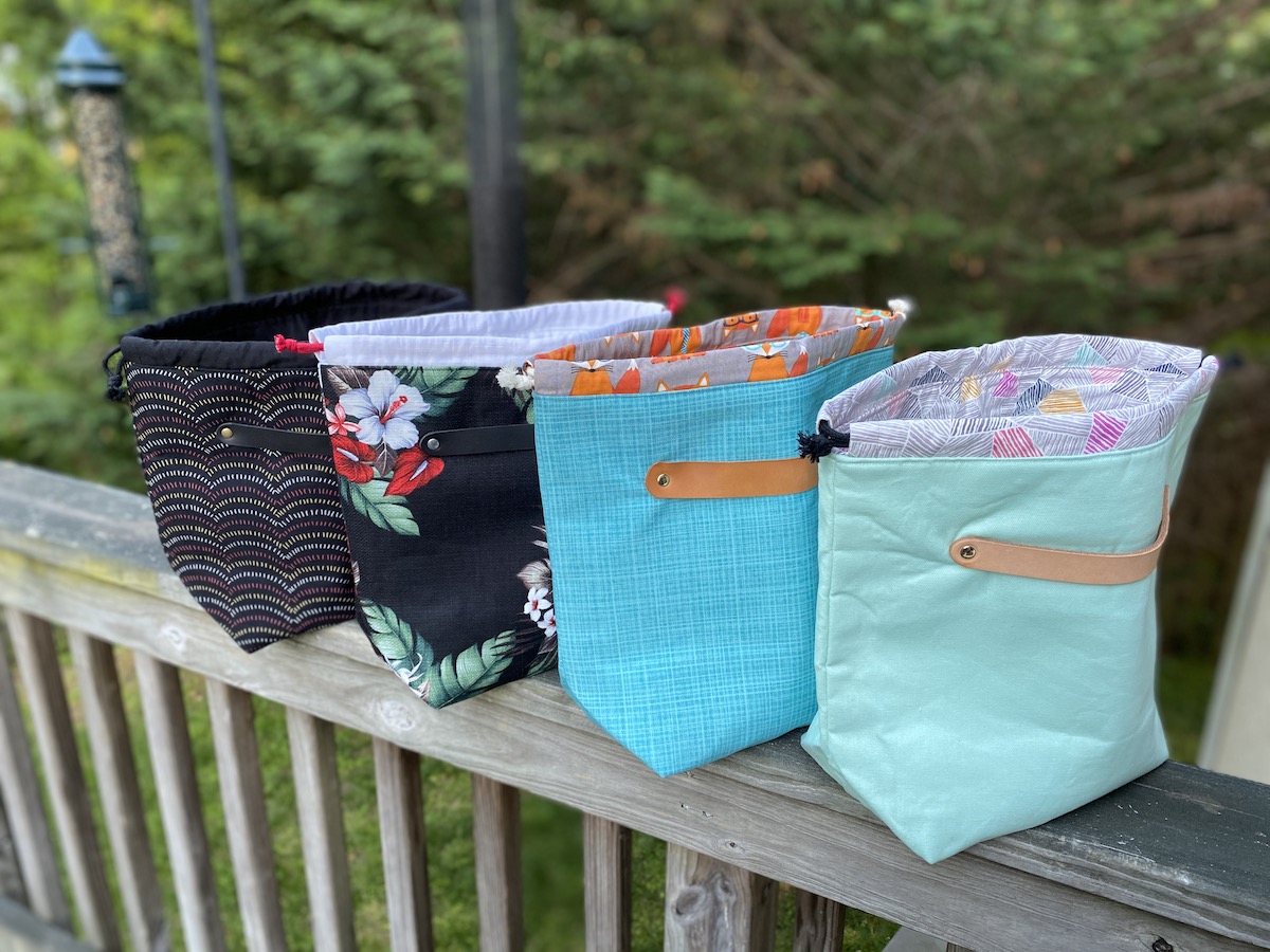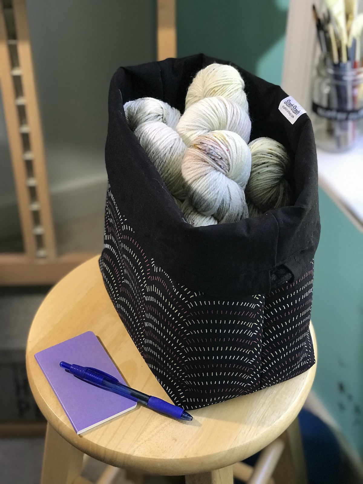 To celebrate our reopening, we are delighted to bring you a big delivery of these locally made project bags! Stash Stash bags are designed and made by Kesley, a regular to the shop! Sewn on a machine (Bella the Sailrite or Dona the Singer), Stash Stash bags are designed for function and style. Their fabric and leather are hand-cut and rivets set with Rosie the rivet press.