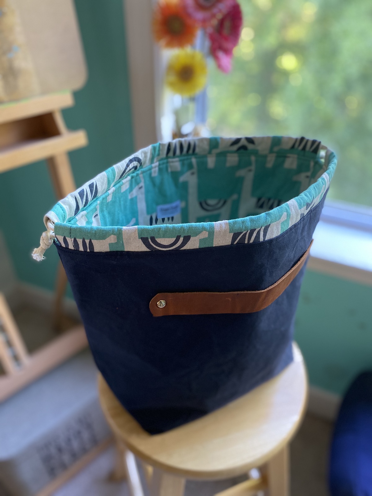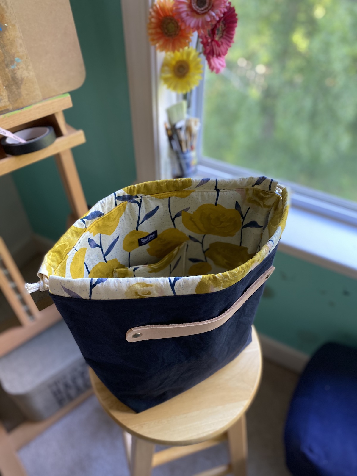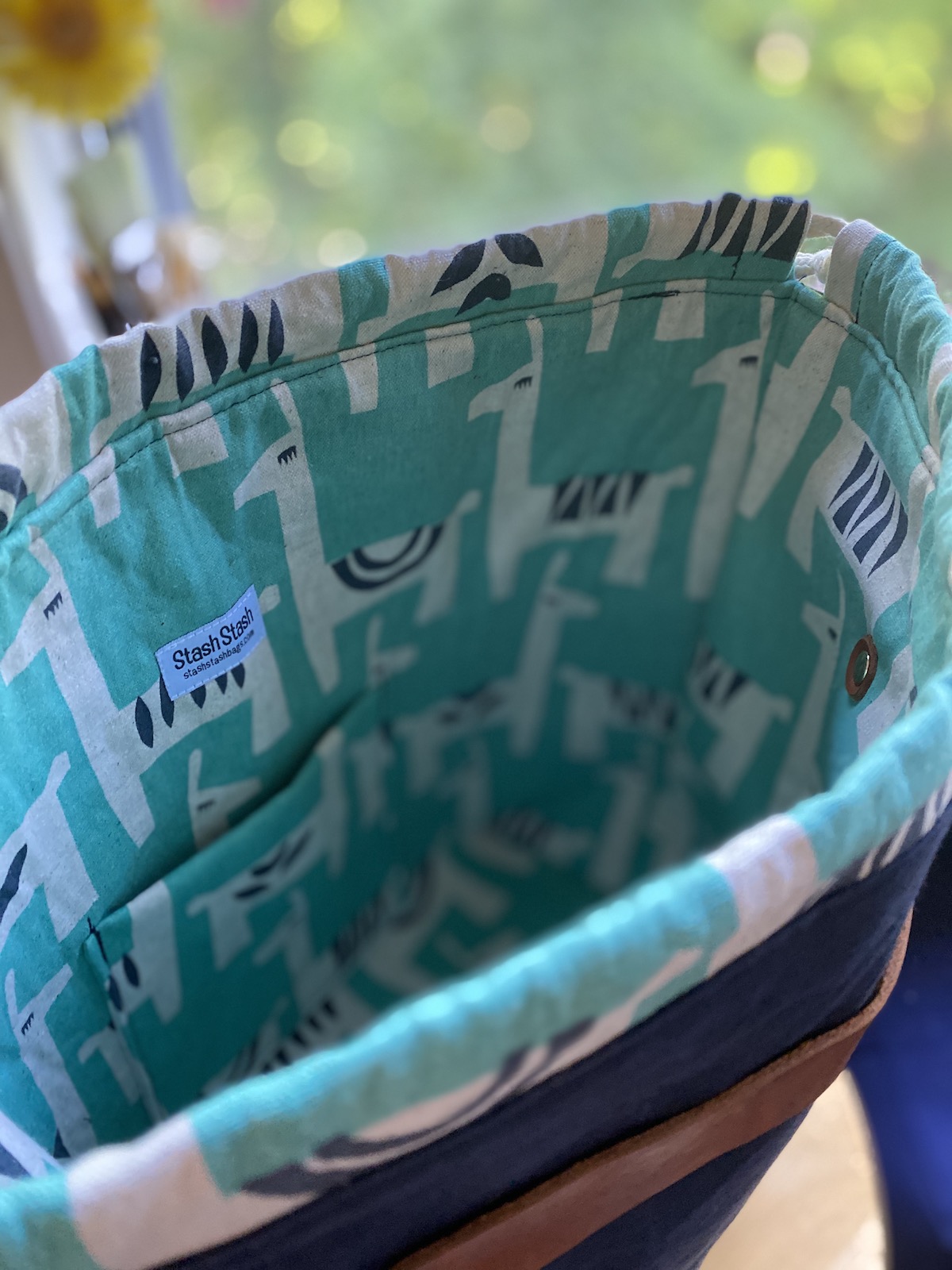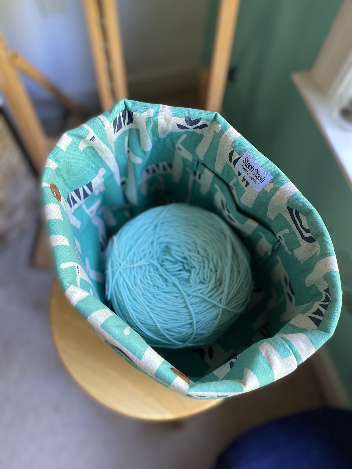 To celebrate our reopening, we are delighted to bring you a big delivery of these locally made project bags! Stash Stash bags are designed and made by Kesley, a regular to the shop! Sewn on a machine (Bella the Sailrite or Dona the Singer), Stash Stash bags are designed for function and style. Their fabric and leather are hand-cut and rivets set with Rosie the rivet press.