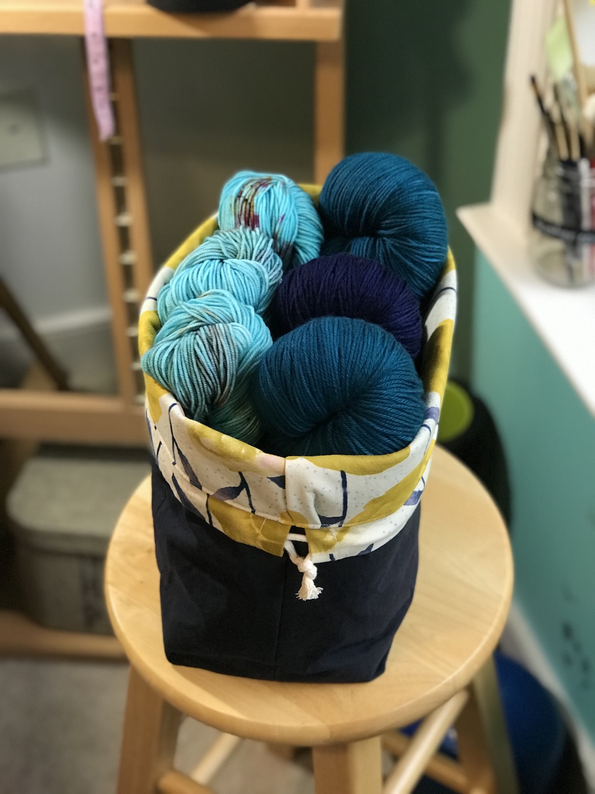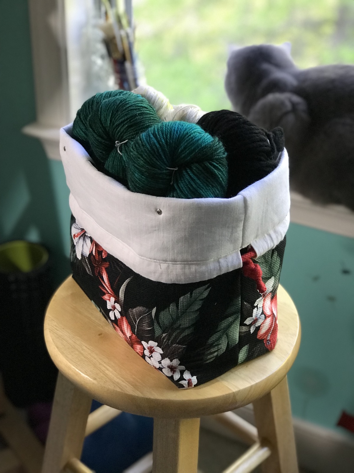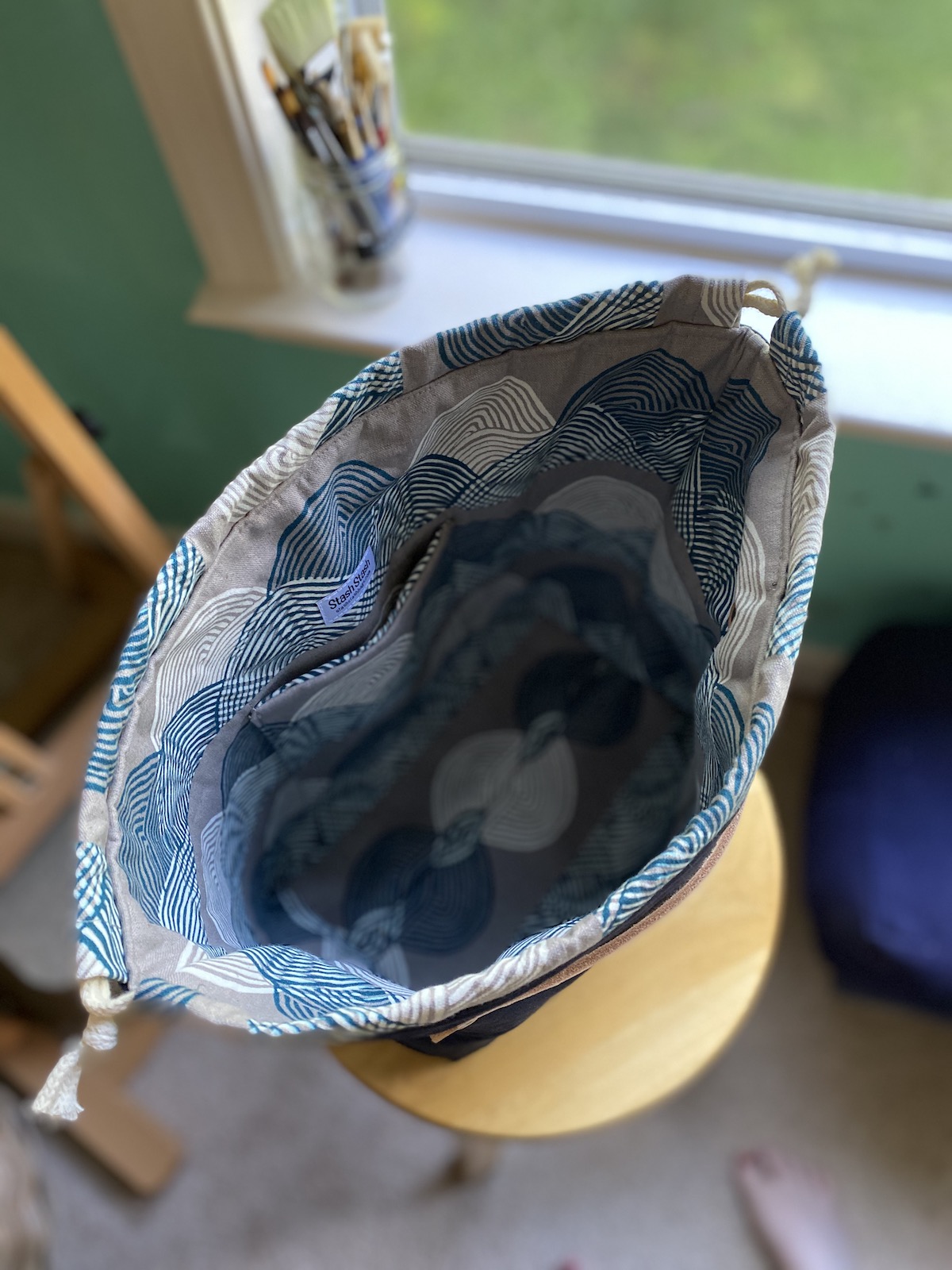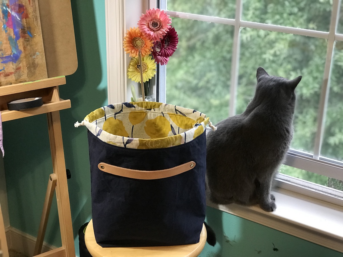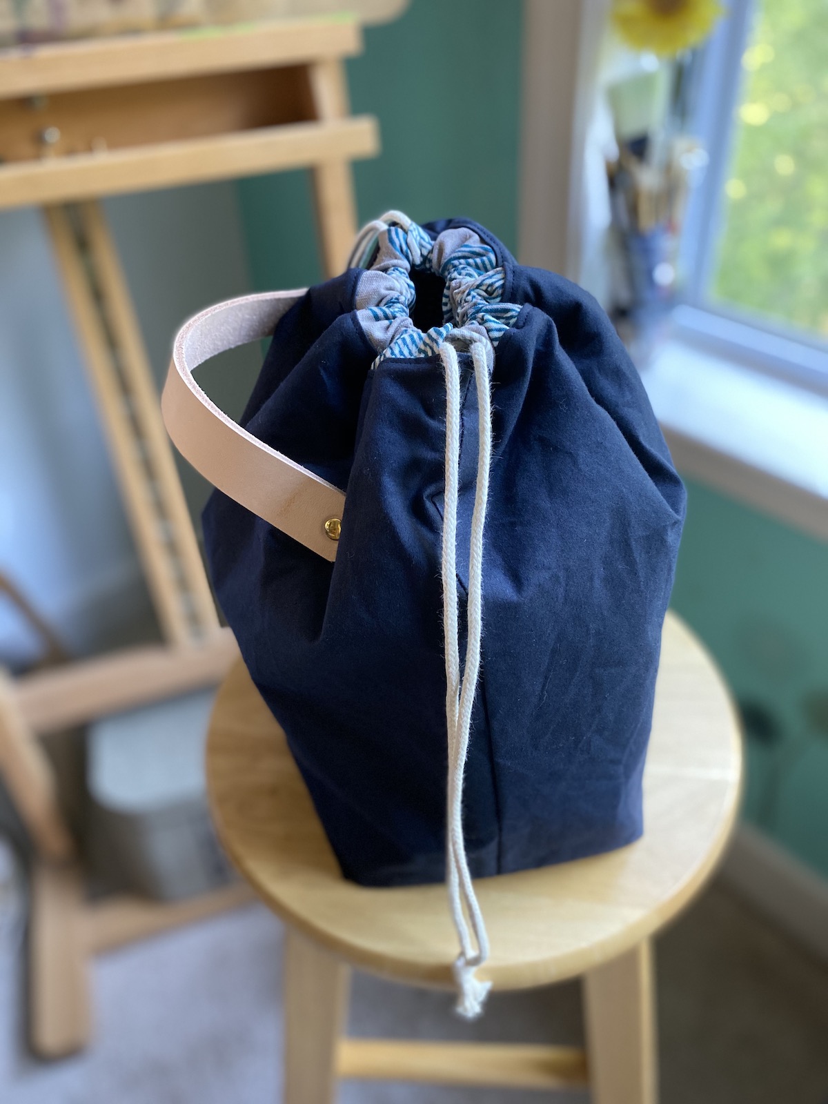 To celebrate our reopening, we are delighted to bring you a big delivery of these locally made project bags! Stash Stash bags are designed and made by Kesley, a regular to the shop! Sewn on a machine (Bella the Sailrite or Dona the Singer), Stash Stash bags are designed for function and style. Their fabric and leather are hand-cut and rivets set with Rosie the rivet press.