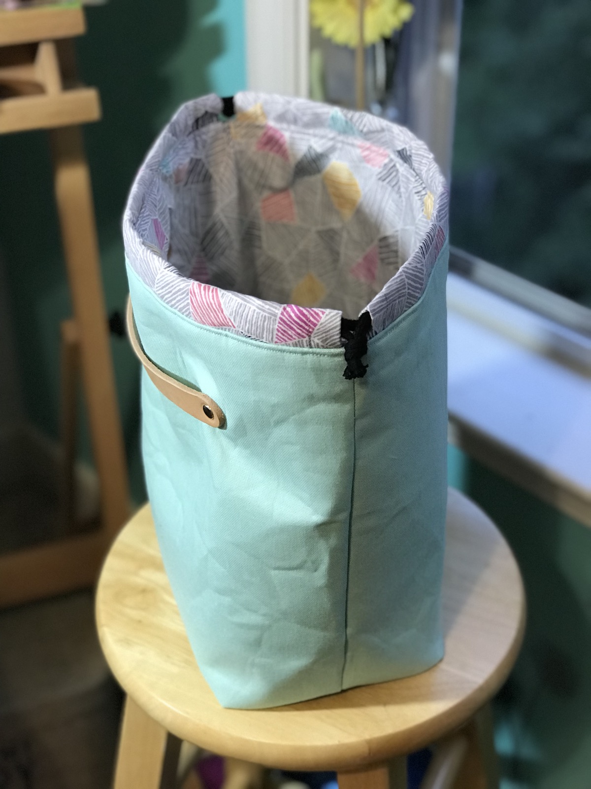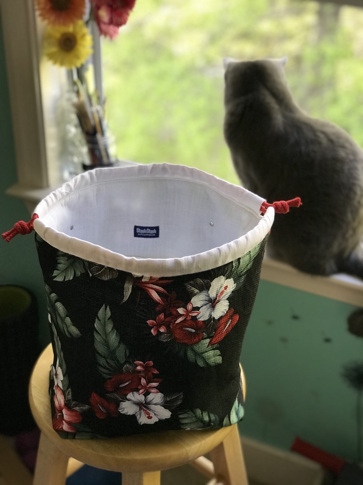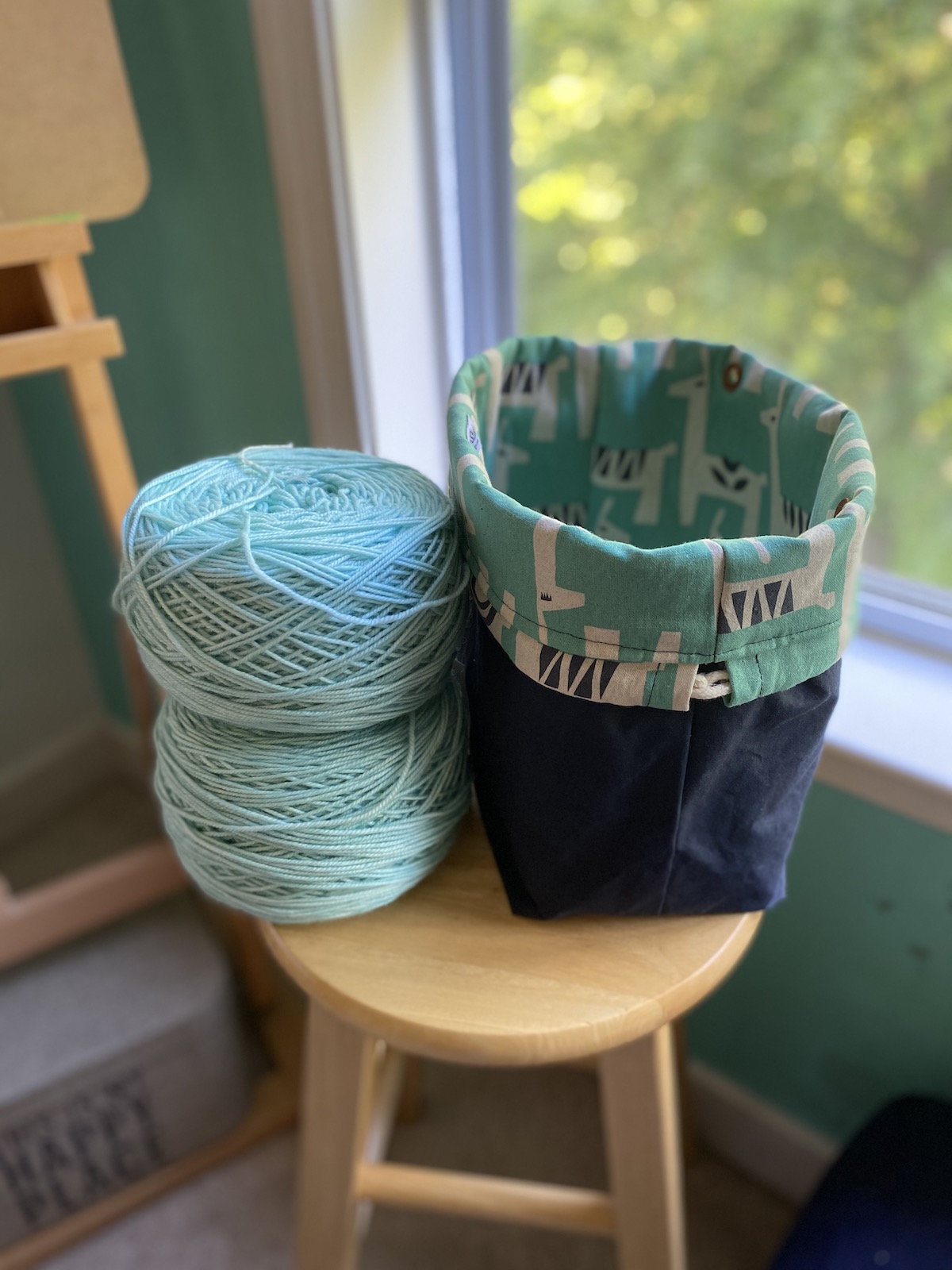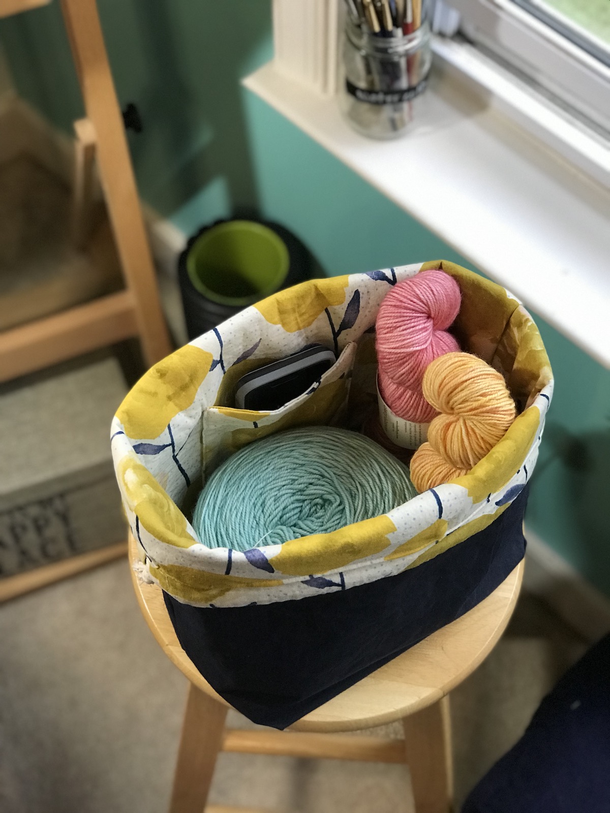 To celebrate our reopening, we are delighted to bring you a big delivery of these locally made project bags! Stash Stash bags are designed and made by Kesley, a regular to the shop! Sewn on a machine (Bella the Sailrite or Dona the Singer), Stash Stash bags are designed for function and style. Their fabric and leather are hand-cut and rivets set with Rosie the rivet press.