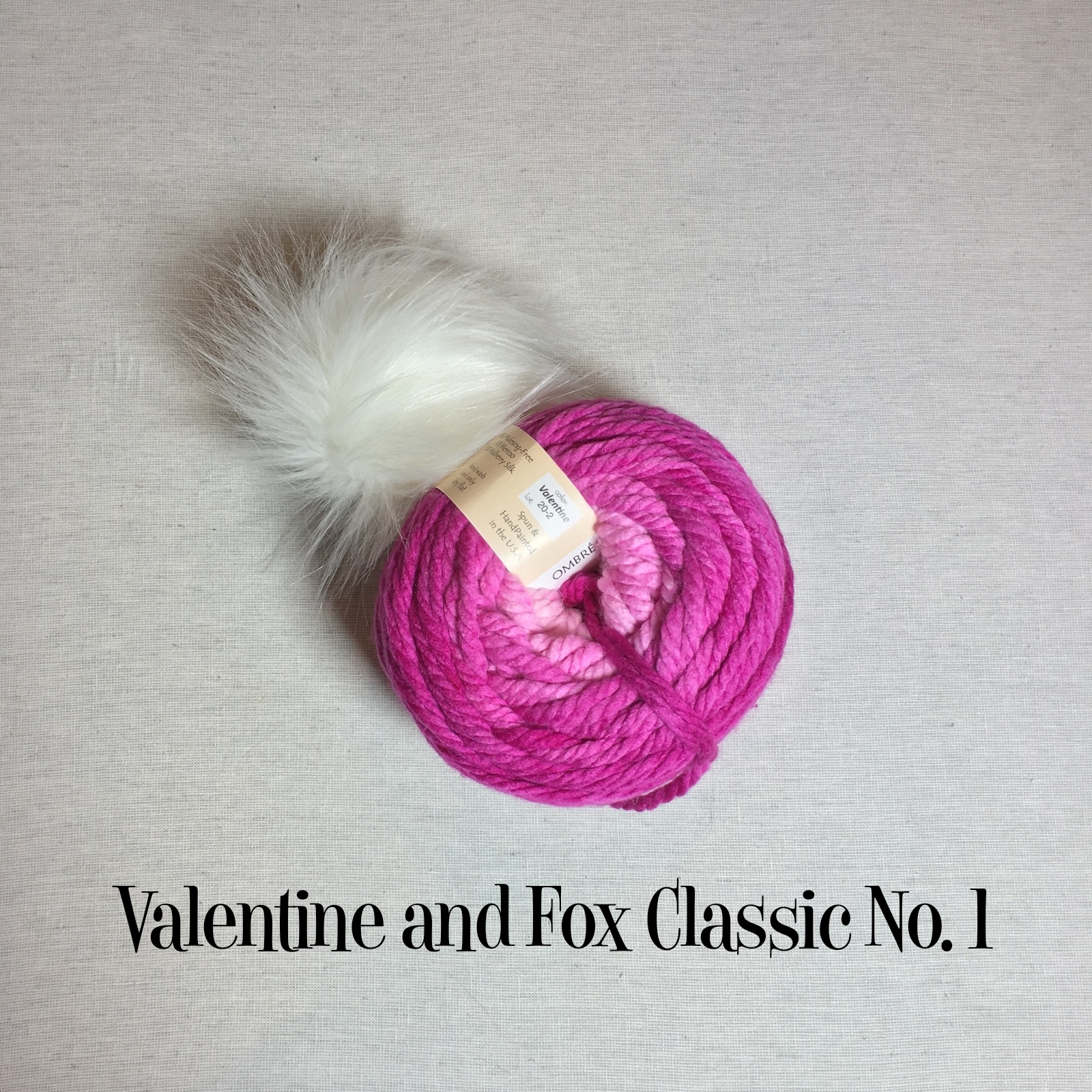 Instant gratification knits = instant gifts you can whip up in an evening! We’re so excited to welcome an new refined base from Freia Yarns. Her new Plush Super Bulky base features the same stunning hand-dyed ombre gradients, on a super soft and squishy Merino/Silk blend that is made in the USA. At 100 yards, there is more than enough in one skein to whip up a quick hat! Maiah whipped up this Sidewinder Beanie. Cleverly placed knits and purls create a swirled design. Top it off with one of our luxury vegan pom poms for a quick stylish gift! Plus, if you’d like to make a matching set, grab two skeins and make the matching Sidewinder Cowl as well. Katie is rocking our sample in “Nautilus” topped with a Fox Classic No. 39 pom.