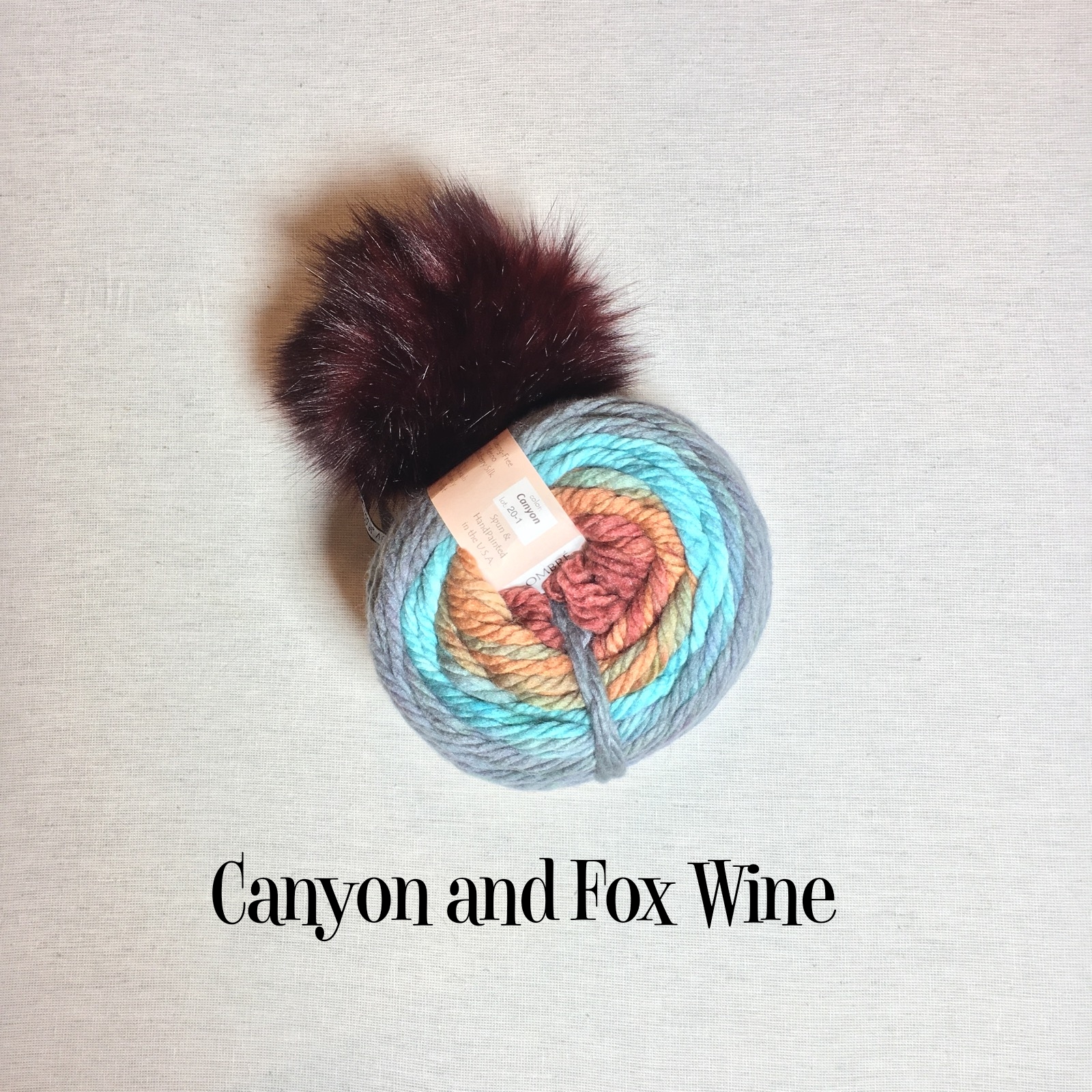 Teddy put together some yarn and pom pom combos for your inspiration! If you need help picking a pom pom for your yarn, just let us know – we’d love to help!