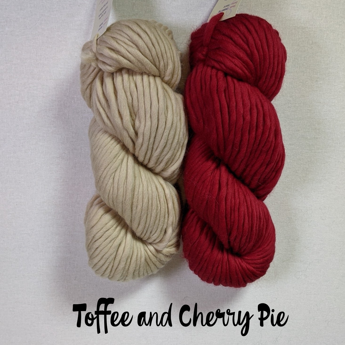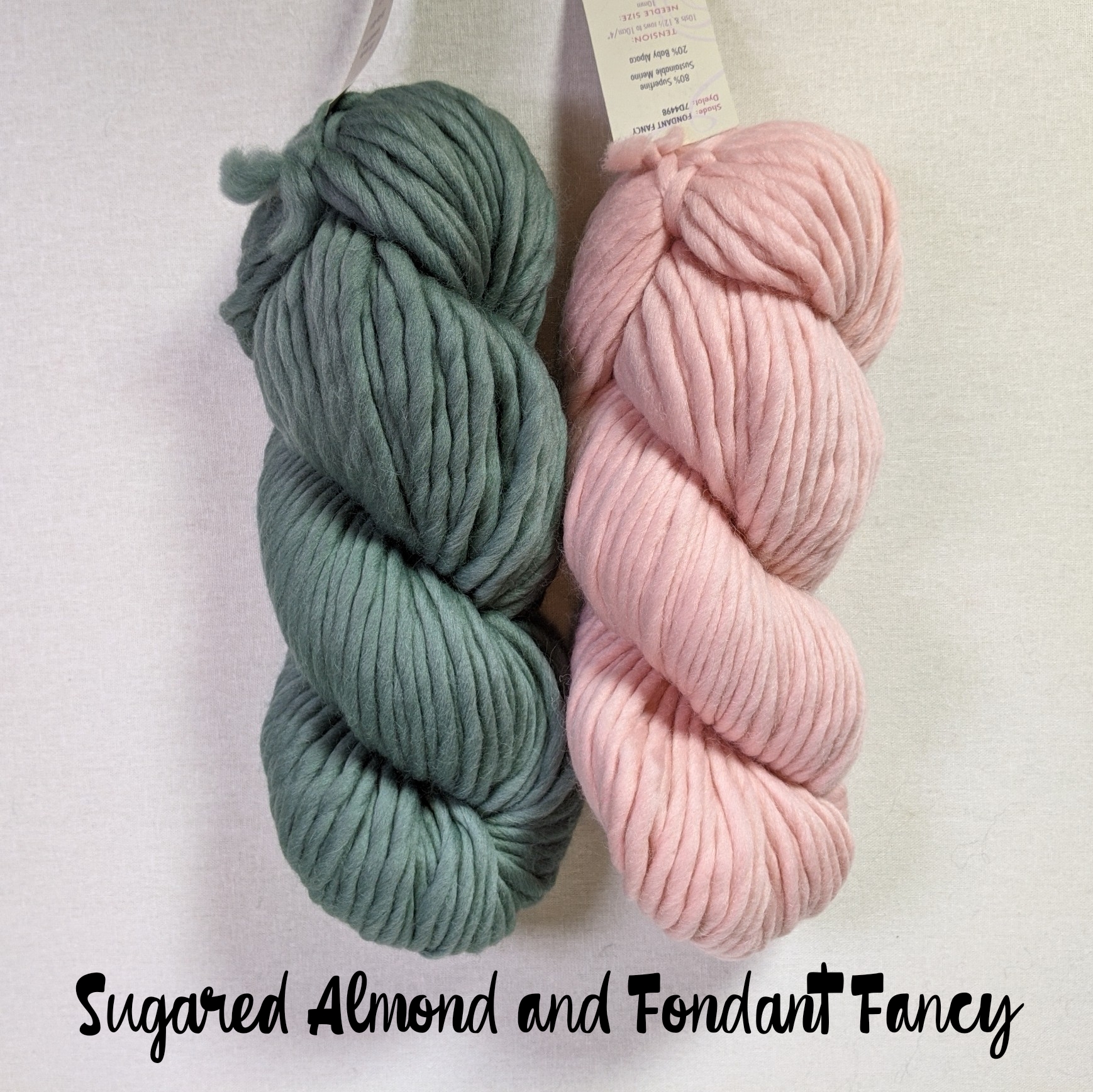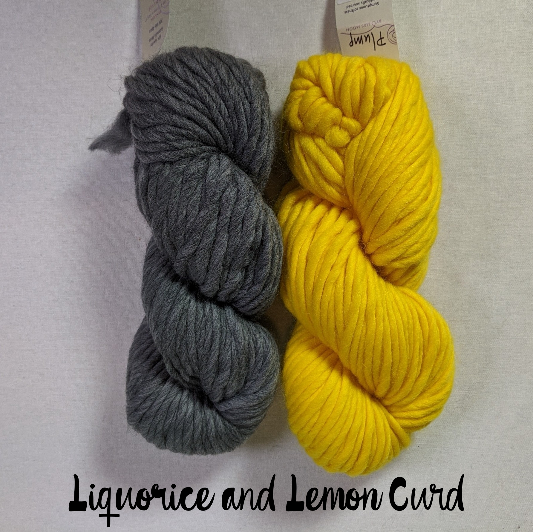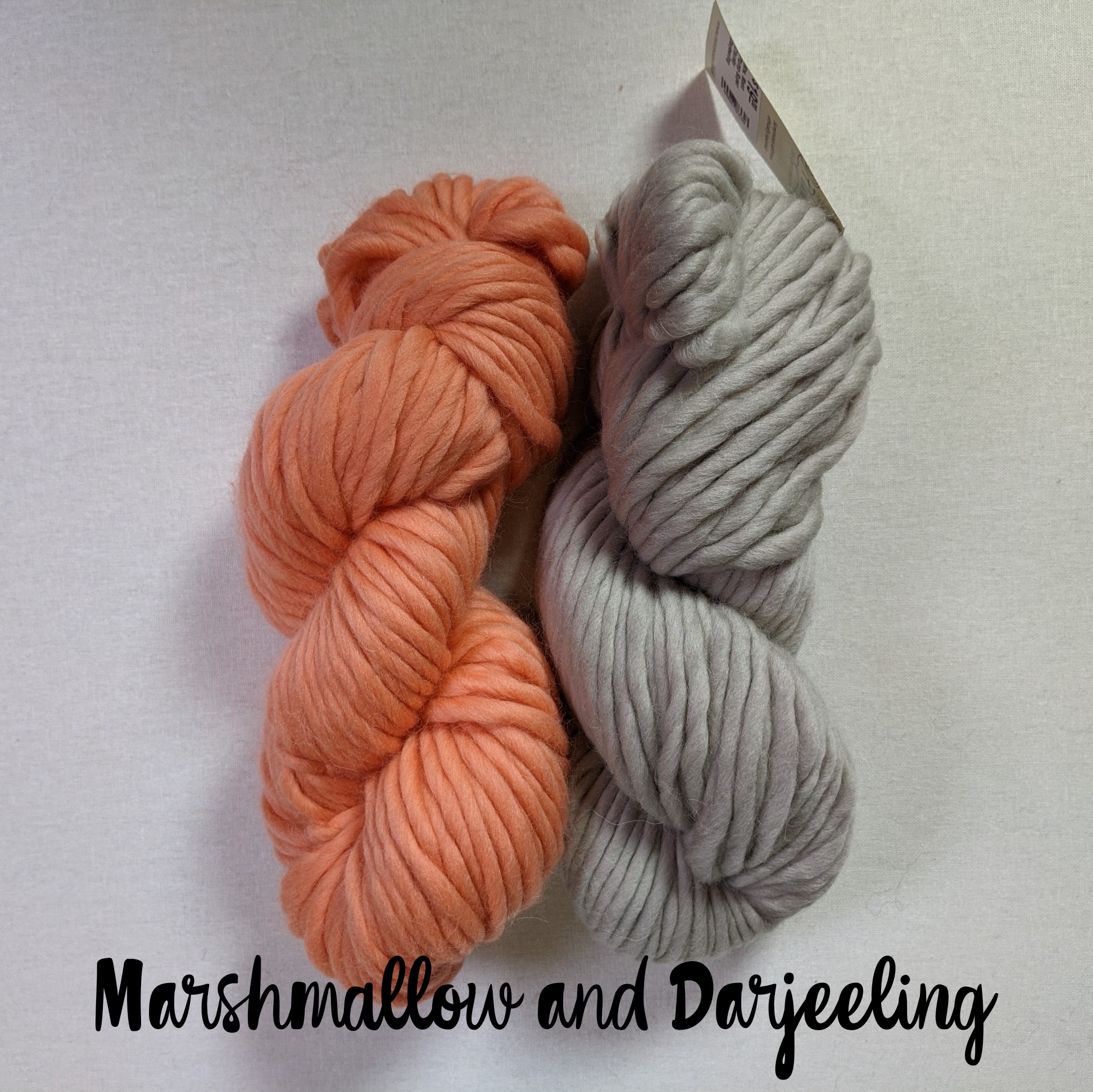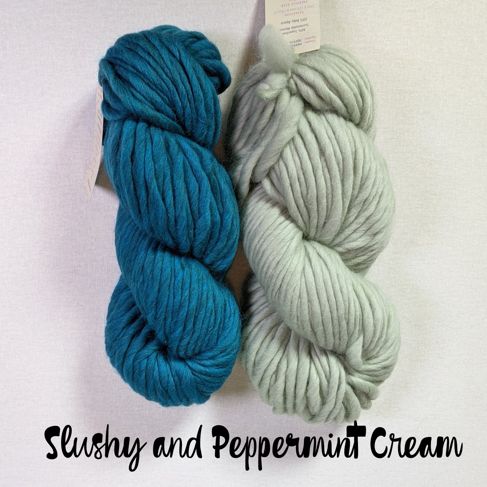 - 2 skeins Mrs. Moon Plump Superchunky, 1 skein each in 2 different colors (80% superfine merino, 20% baby alpaca)