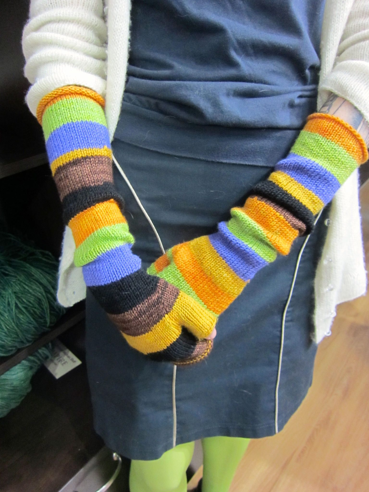 Self striping yarn from Knitterly Things is back! This sock yarn does all the work for you – adding bright gorgeous stripes to your socks. Pick even the most basic ribbed sock pattern, and your project will still be impressive. Each skein of Vesper comes with 428 yards of gorgeous self-striping colors, ready to inspire you for a new pair of socks, mittens, or if you’re feeling daring, to play in larger project.
