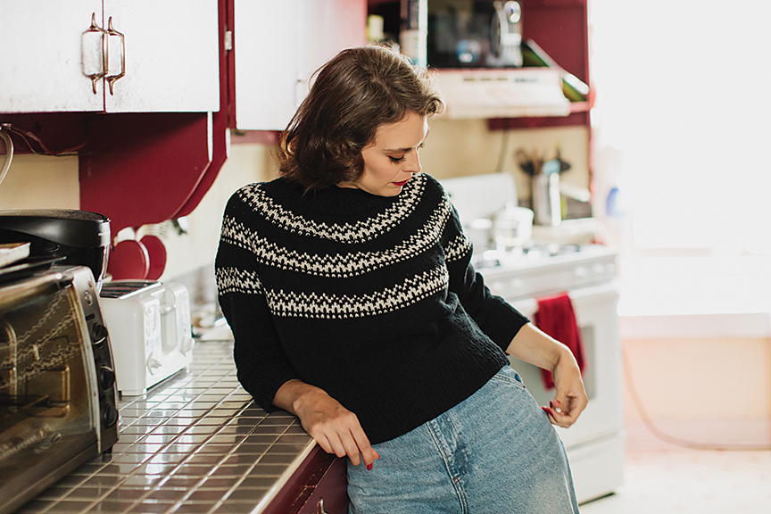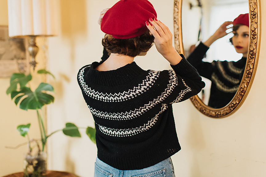 Hawley is an oversized top-down yoke sweater with a simple two-color motif, a loose, swingy silhouette, and bracelet-length sleeves. Easy to knit and easy to wear, this seamless piece comes together quickly and pairs with everything from pants to skirts to dresses.