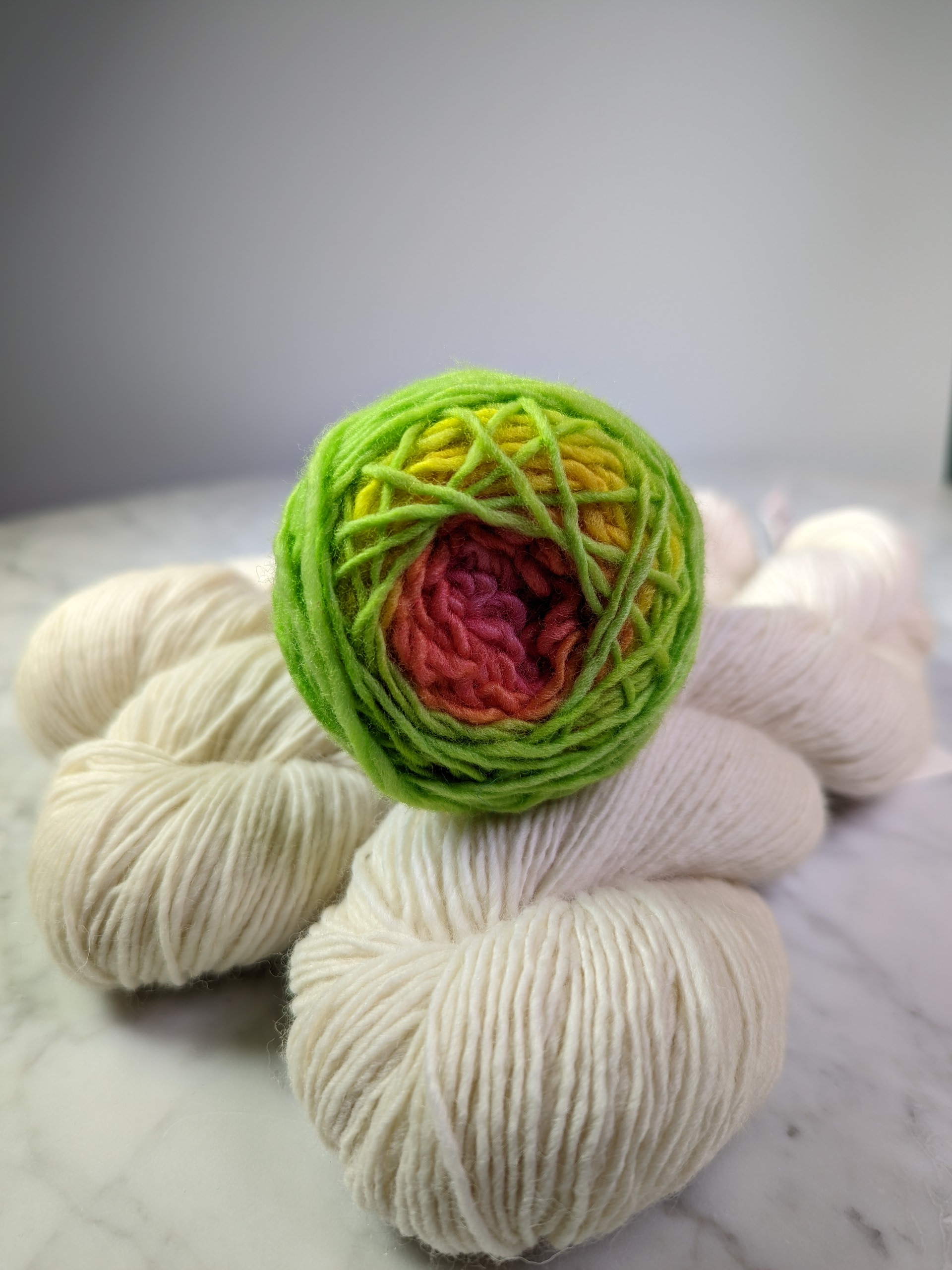 This week for Must Make Monday, we have lightweight tops on the brain! All the yarnistas were oohing and ahing over the Floatside Top by Wool & Pine. We love this top because of the cool geometric pattern using “floatside” colorwork, the latvian braid borders, and the scoop neck.Yarnista Alex came up with the brilliant idea to use Freia Minikins for the colorwork motif! These mini gradient skeins will give you an ombre effect in the colorwork, without having to use a bunch of mini skeins (hey, we’re always happy with less ends to weave in.) For the main color, we’ve chosen Blue Sky Fibers Woolstok Lite, as they have just launched new colors! With a palette of 21 colors to choose from, it’s easy to find the perfect complimentary color. Check out the pattern details, and some of the yarnista’s favorite color combos below. We love this top because of the cool geometric pattern using “floatside” colorwork, the latvian braid borders, and the scoop neck.