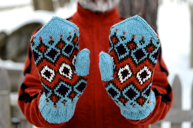 While the DC area enjoyed a relatively mild New Year, January is back in all its’ chilly glory – and all we want is a warm pair of mittens on our hands. Fair Isle mittens are some of our favorite to make, in part because the colorful designs bring a bit of cheer to these dreary cold months, and partly because the stranded color work means that the mittens are insulated with an extra layer of wooly goodness due to the strands carried across the back of the work.