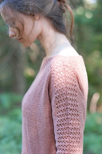 We’re in the mood for some easy dreamy sweaters this week for Must Make Monday. This seamed sweater is worked from the bottom up, with a delicate lace detail at the collar and sleeves for a touch of romance.