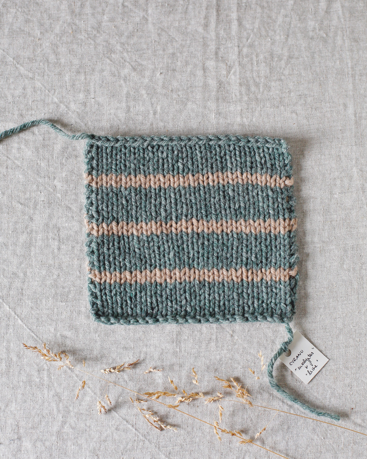 - 14 to 16 sts over 4” on a US 9-10 needle