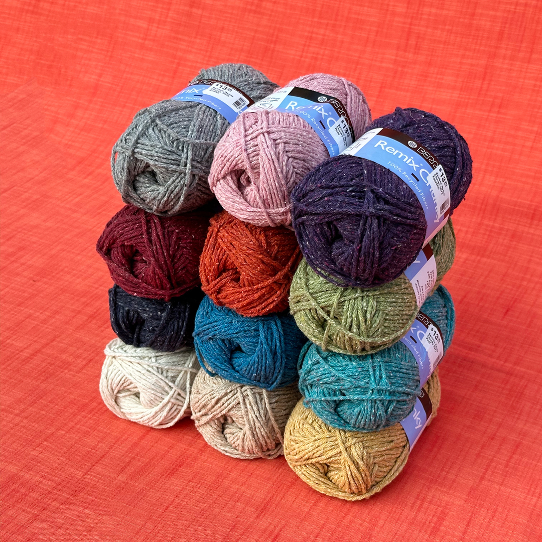 Eco-friendly favorite Berroco Remix Chunky is back in space with a seasonal refresh, and we cannot wait to cast on. Berroco’s popular recycled yarn base is a machine-washable blend of nylon, cotton, acrylic, silk and linen that works up into a fabric that reminds you of your favorite well-loved sweatshirt. The tweedy look of the yarn only adds to the charm, and makes it an ideal fit for casual knits.