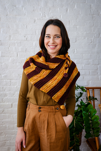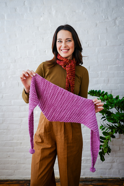 - One-skein scarf: 1 sk of either yarn (shown in K101 Spices (Marla) and Y2612 Peonies (Sami))