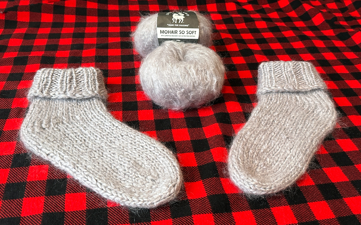 Olga’s newest pattern, Squish House Socks Pattern, is fun, fast, and the perfect project for cozy stitching by the fire. Knit up a soft and fuzzy pair in Loopy Mango Mohair So Soft (available in our ALX shop) or a fabulously colorful version in squishy Spincycle Plump (available in the shop and on our capsule!)