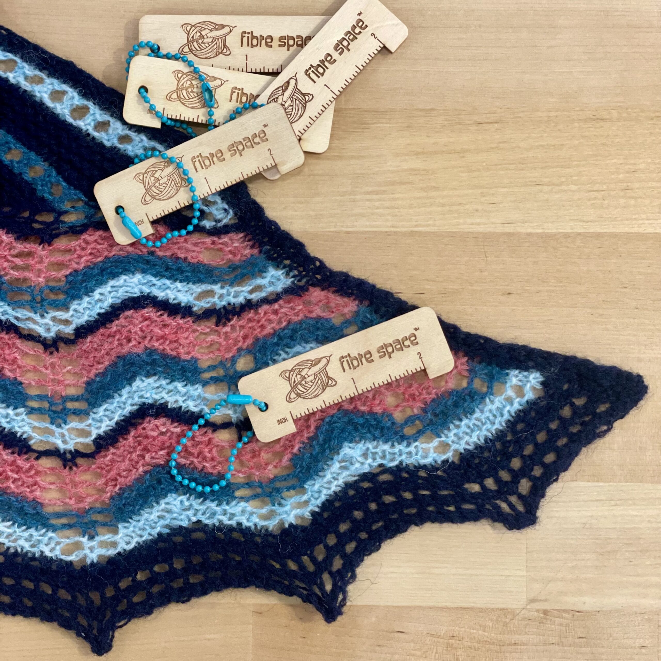 If you buy your project yarn from us, let us know that you are jumping into our Nostalgia SAL, and we will give you a custom fibre space x Katrinkles 2″ ruler for quick gauge checks on the go.