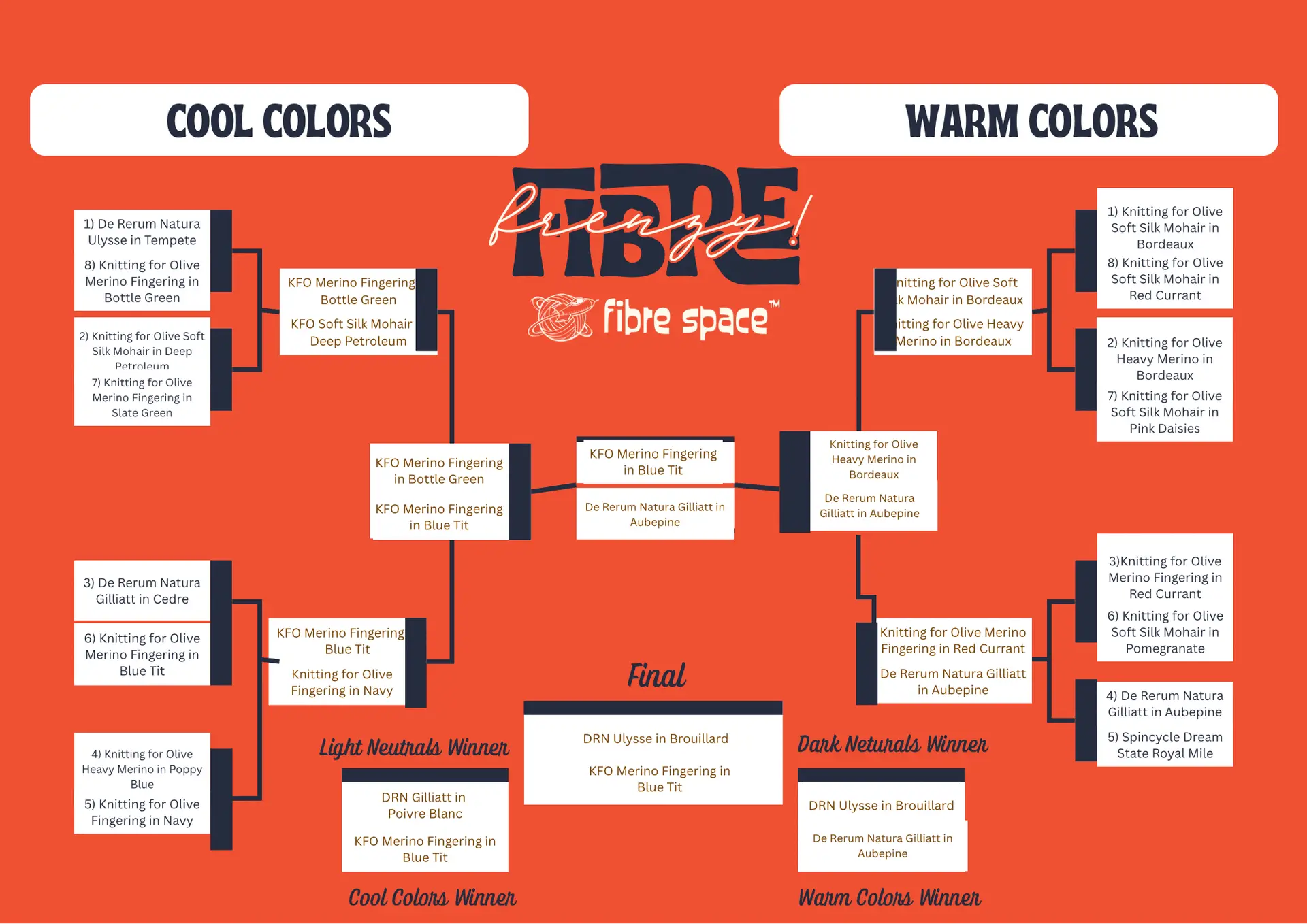 Color the yarnistas shocked! Perhaps our voters aren’t fans of worsted weights in cool colors?