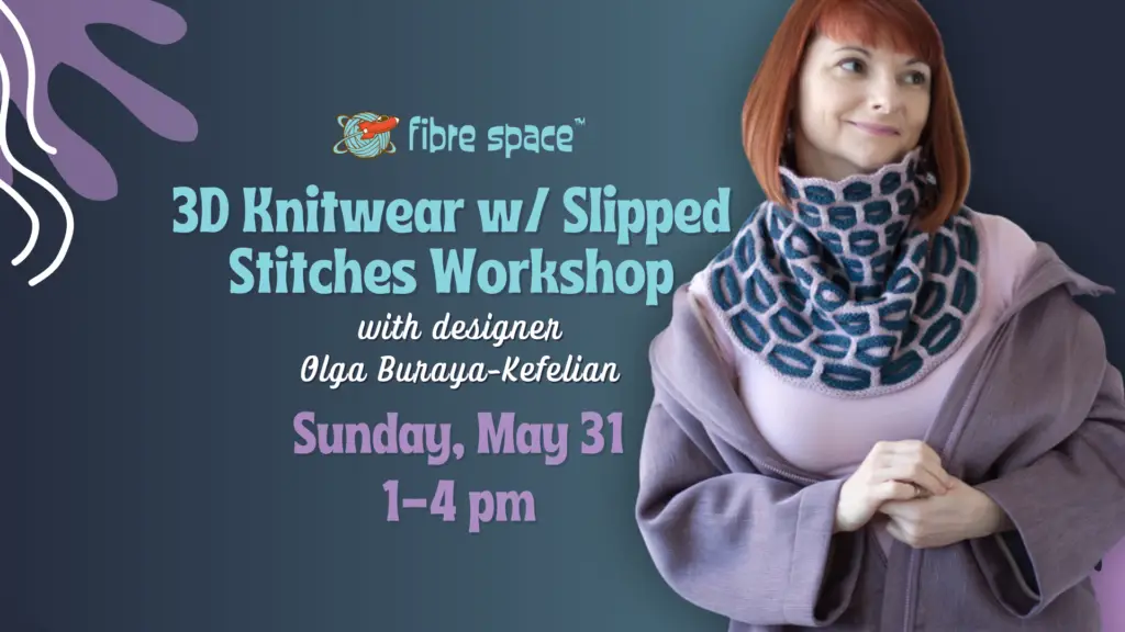 Join local designer Olga Buraya-Kefelian to explore 3D knitwear! Olga will share her 3D design philosophy and her inspiration process, and will reveal a different angle on knitwear that will put your existing skills on a new and novel path. Part demonstration, part hands-on, this workshop will show you how to create 3D textured accessories using a special Slip Stitch technique. Students will learn not just how to stitch 3D knits, but also how to adapt, combine, and shape to their liking.