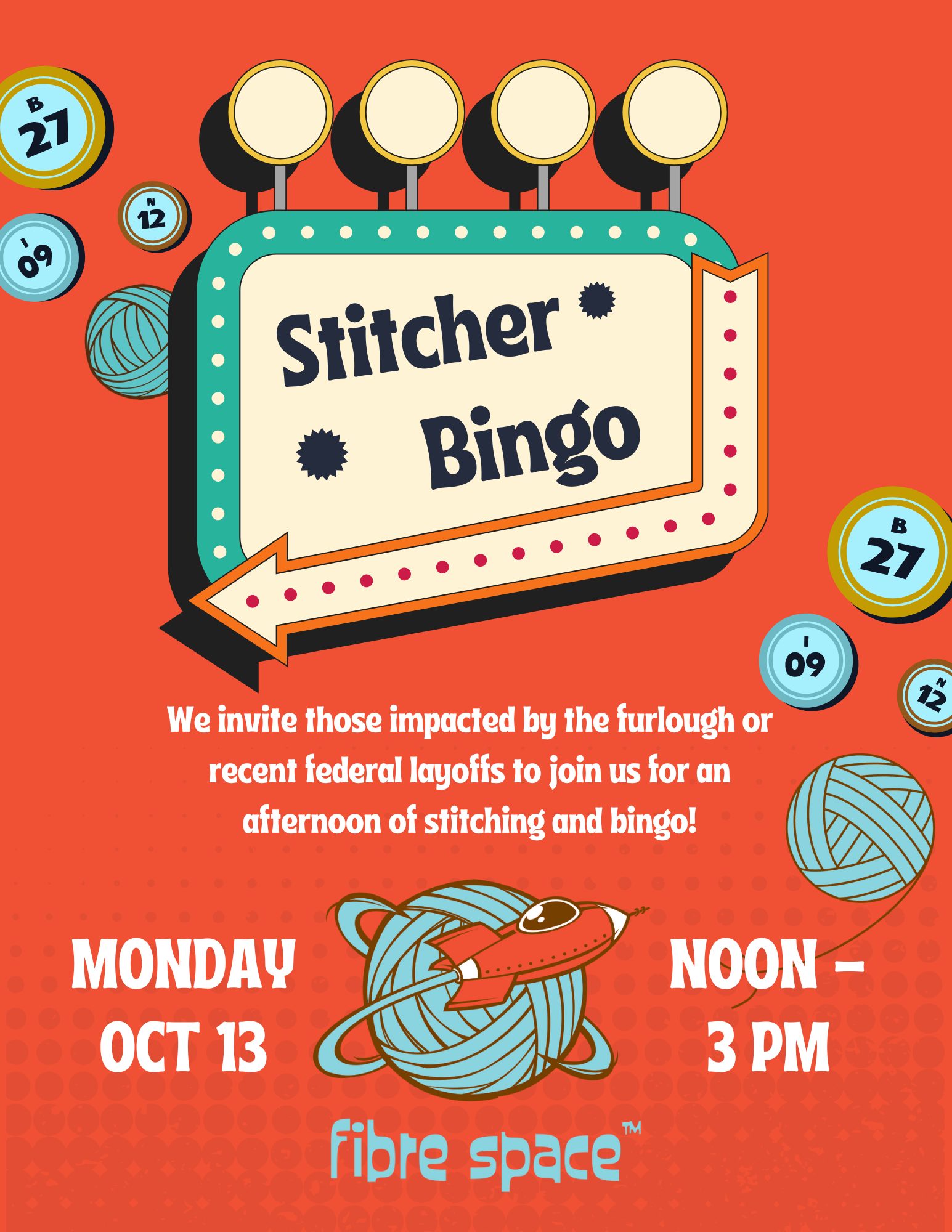 We invite those impacted by the furlough or layoffs to join us for an afternoon of stitching and bingo! Plan for a bit of distraction and lot of fun and connection. Feel free to bring: